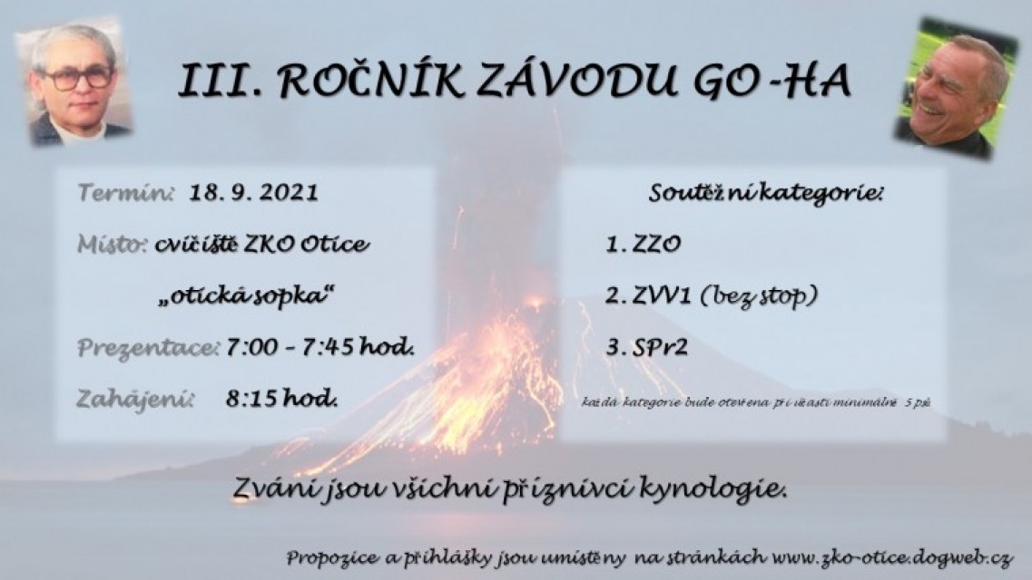 V sobotu 18.09.2021 se koná 3. ročník Závodu GO-HA v areálu ZKO Otice. - ZRUŠENO !!!